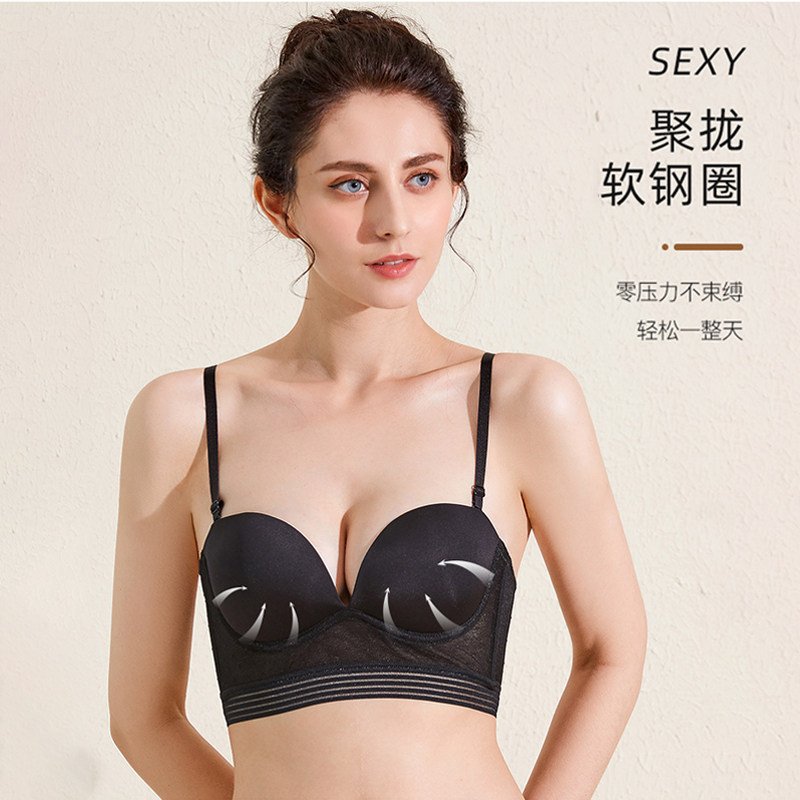 U-shaped halter underwear women's summer small chest gathered sexy lace upper thin lower thick upper bracket invisible beautiful back bra cover