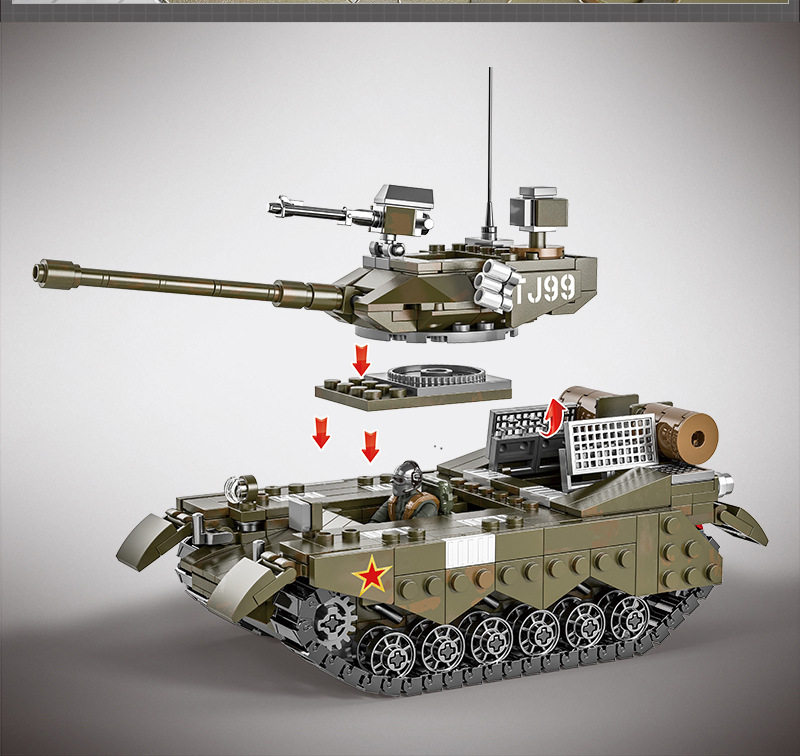 99 Style Main Battle Tank Military Model Small Grain Building Block Assembly Inserted Toy Education Training Institution Color Box Gift