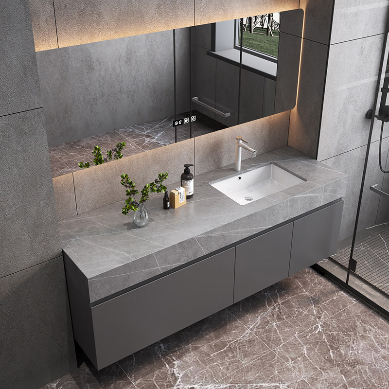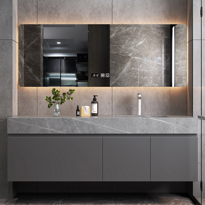 Modern light luxury smart bathroom cabinet combination rock board one-body toilet wash table hand wash basin custom solid wood