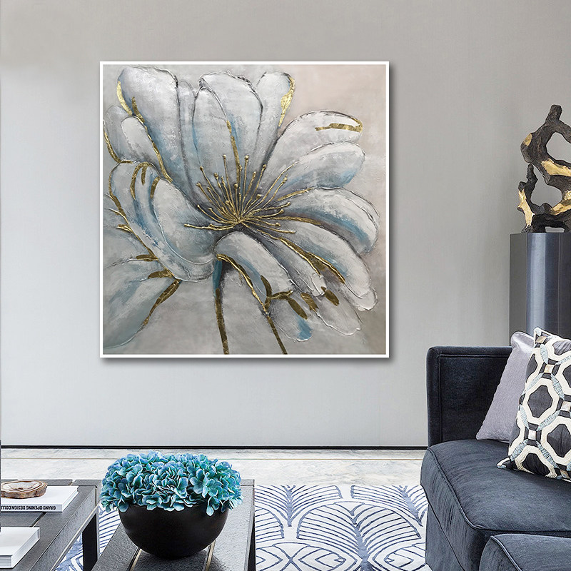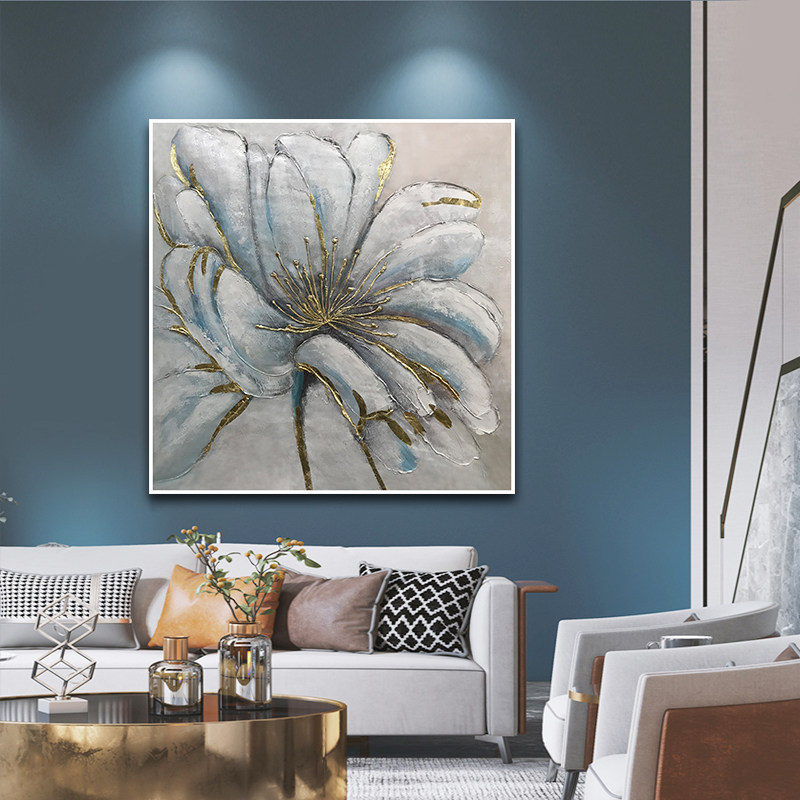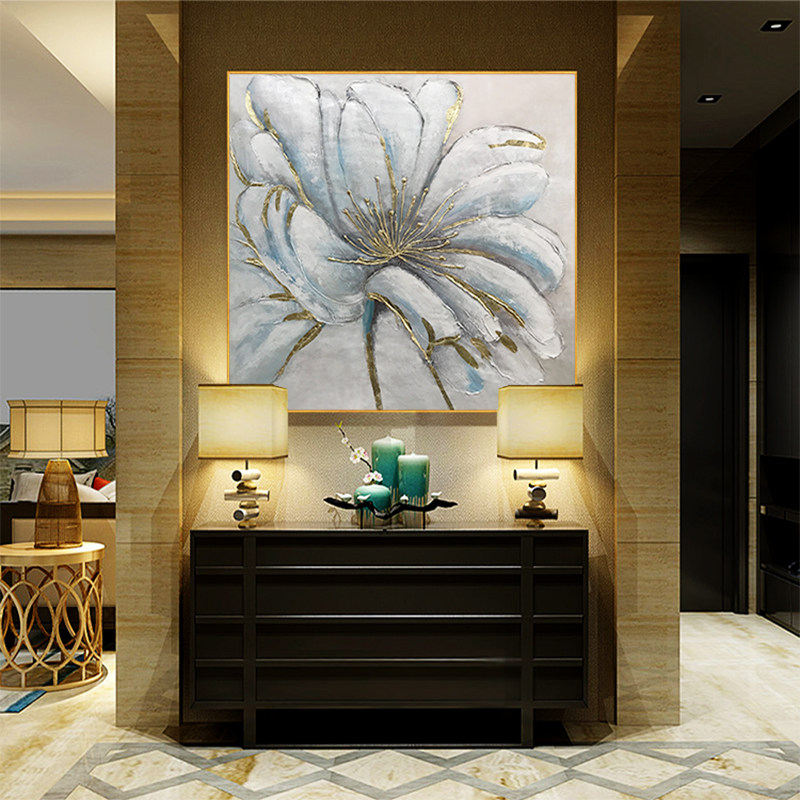 Hand-painted entry porch decorative painting modern minimalist three-dimensional mural light luxury living room dining room oil painting model room hanging painting