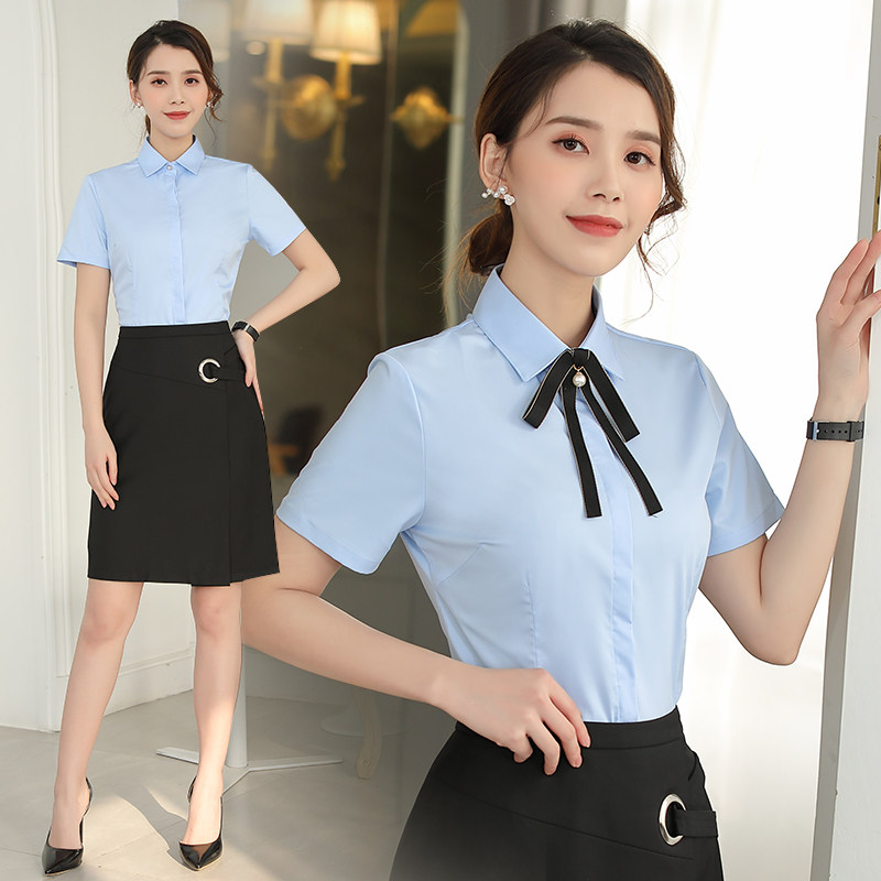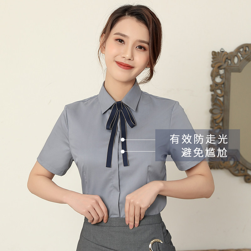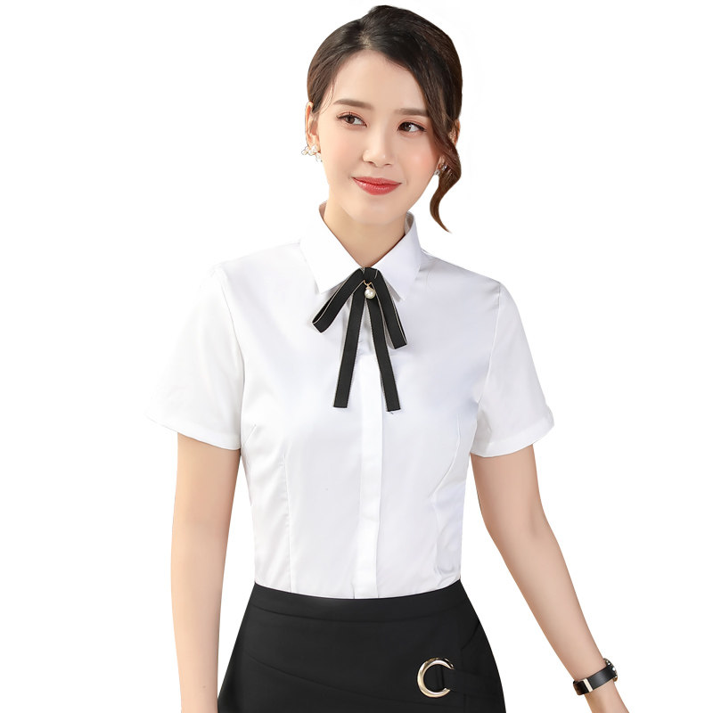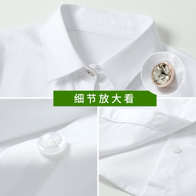Spring Summer White Shirt Woman Professional Dress Long Sleeve Workwear V Collar Positive Dress Free Ironing Shirt Tooling Elastic thin OL Black