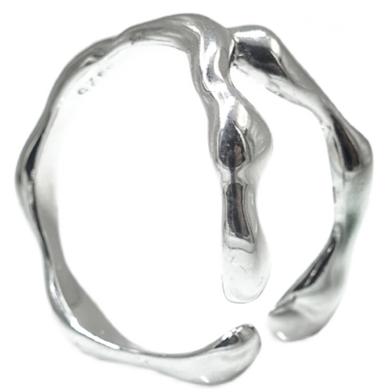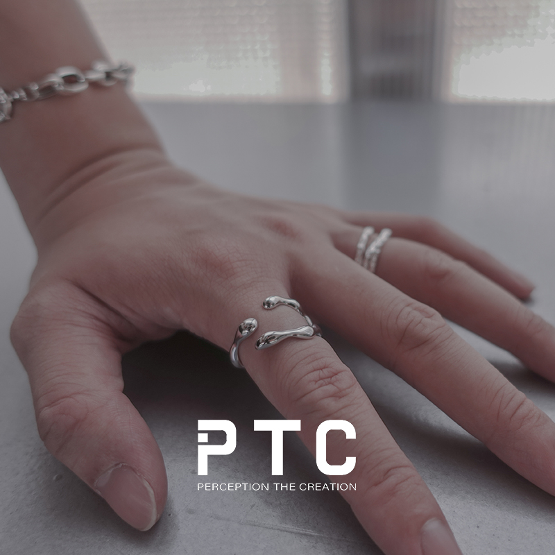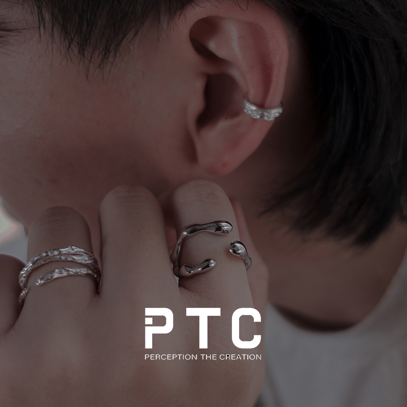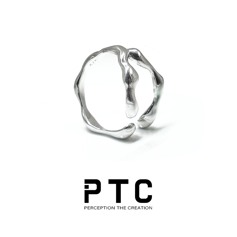 PTC minimalist lines crisscross small crowd lukewarm dark black wind design S925 through body pure silver opening ring male and female