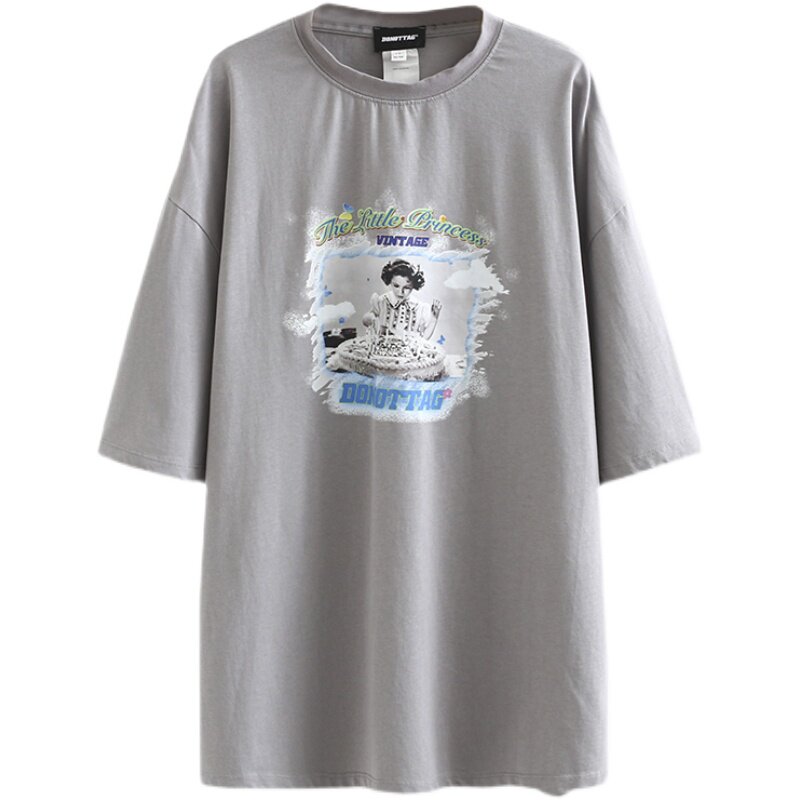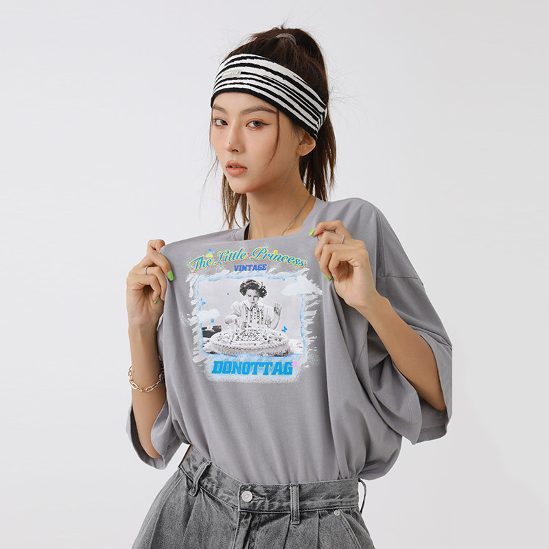DNT Han Huo Huo Who is not yet a little princess it pays tribute to the classic movie summer print short-sleeved crewneck T-shirt