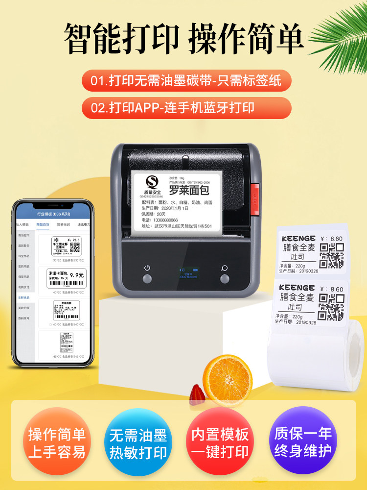 Lean Subjects B3S Food Production Date Label Printing Machine Multifunction Small Thermo-Sensitive Labeling Machine Commercial Adhesive Sticker Milk Tea Bread Egg Pastry Bake Tea Shelf Life stock table