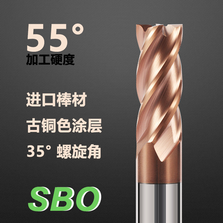 SBO 55 degrees 65 degrees 4-edge tungsten steel milling cutter stainless steel heat treatment material CNC special coated alloy vertical milling cutter