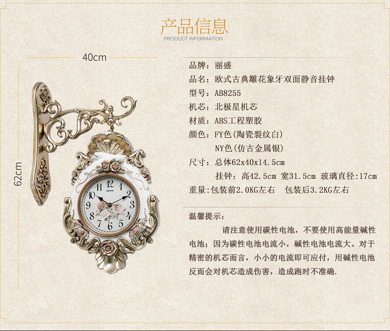 Modern light luxury double-sided wall clock home decoration mute European clock living room fashion wall simple atmospheric clock
