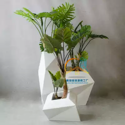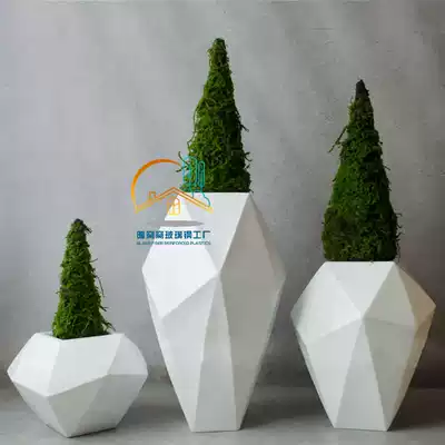 Custom glass fiber flower pots shopping mall hotel sample house display center diamond geometric flower bowl municipal outdoor square large flower Ware