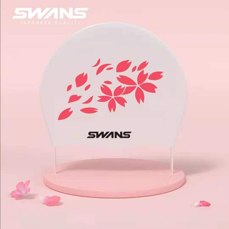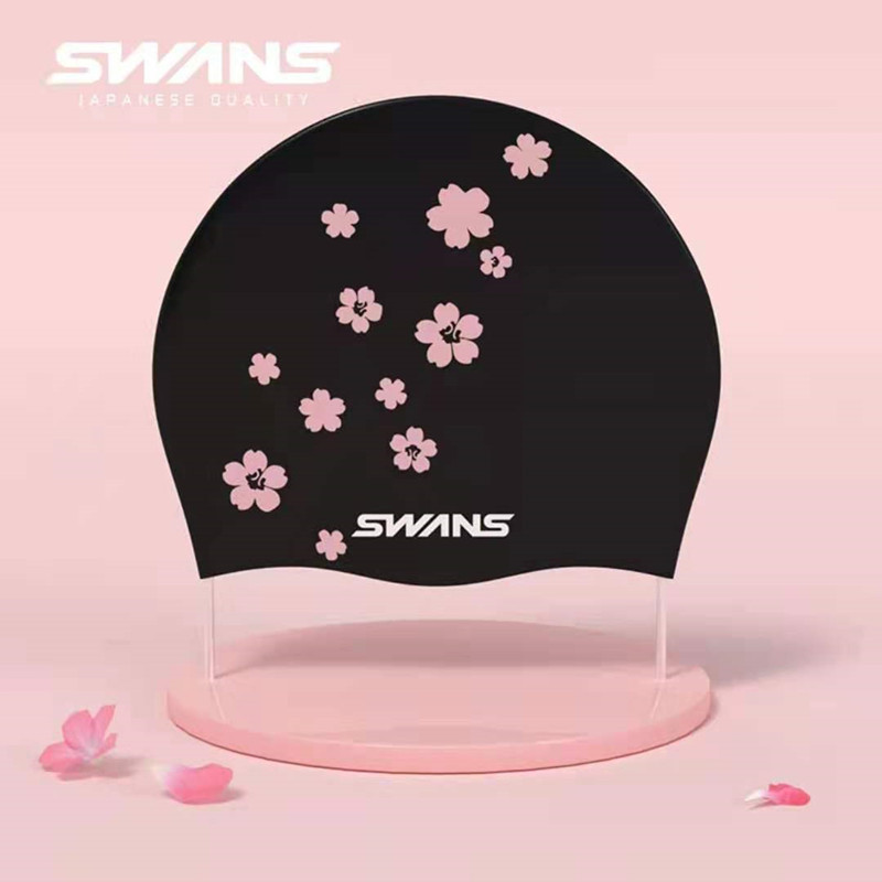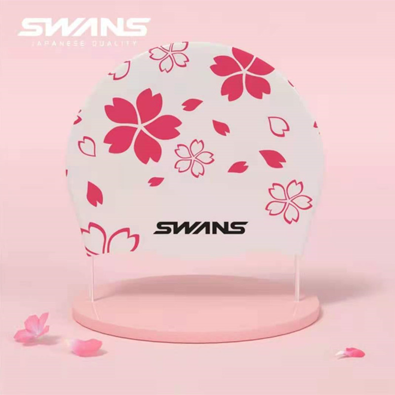 SWANS poetry rhyme men's and women's adult cherry blossom silicone swimming cap waterproof long hair ear protection comfortable not strangling head to increase swimming cap