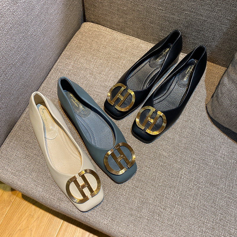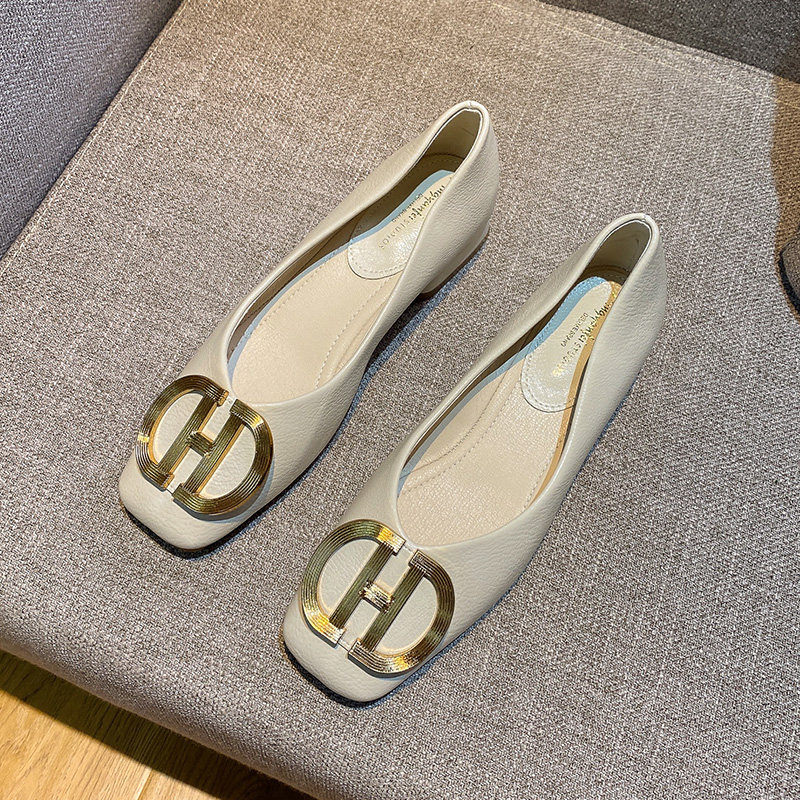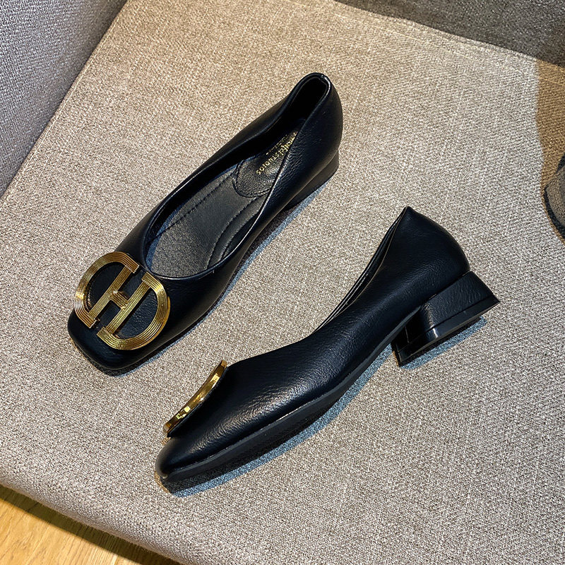 Square head shallow mouth single female 2022 Summer new fashion 100 hitch metal buckle One foot pedal square heel with coarse heel female