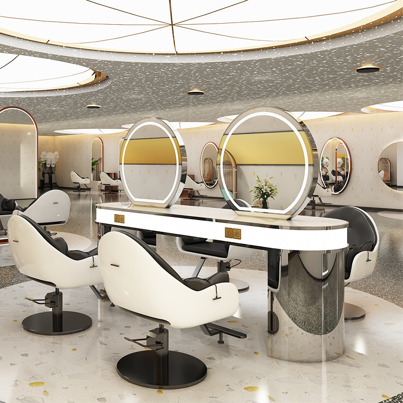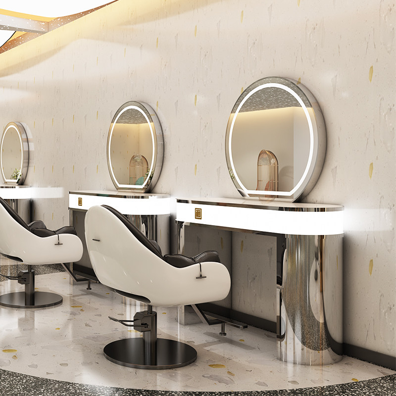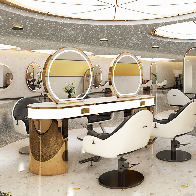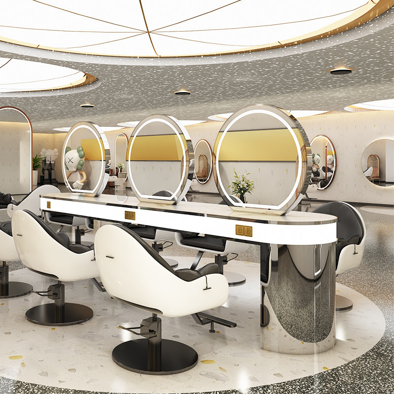 Hairdressshop Mirror Desk Stainless Steel Marble Mesh Red Meme Hair Shop Cut Hair Bifacial Mirror Hair Salon Special Integrated Bronzing