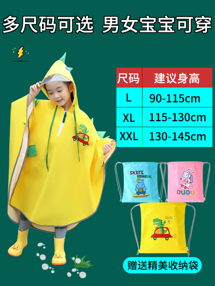 Children's raincoat dinosaur kindergarten boys and girls 2022 primary school students cloak baby children can backpack cartoon poncho