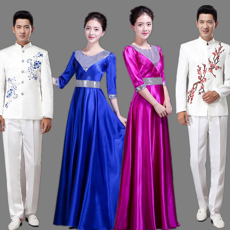 2021 New choral suit long dress with bright sheet ladies' big choral group Costume Stage Play Gown