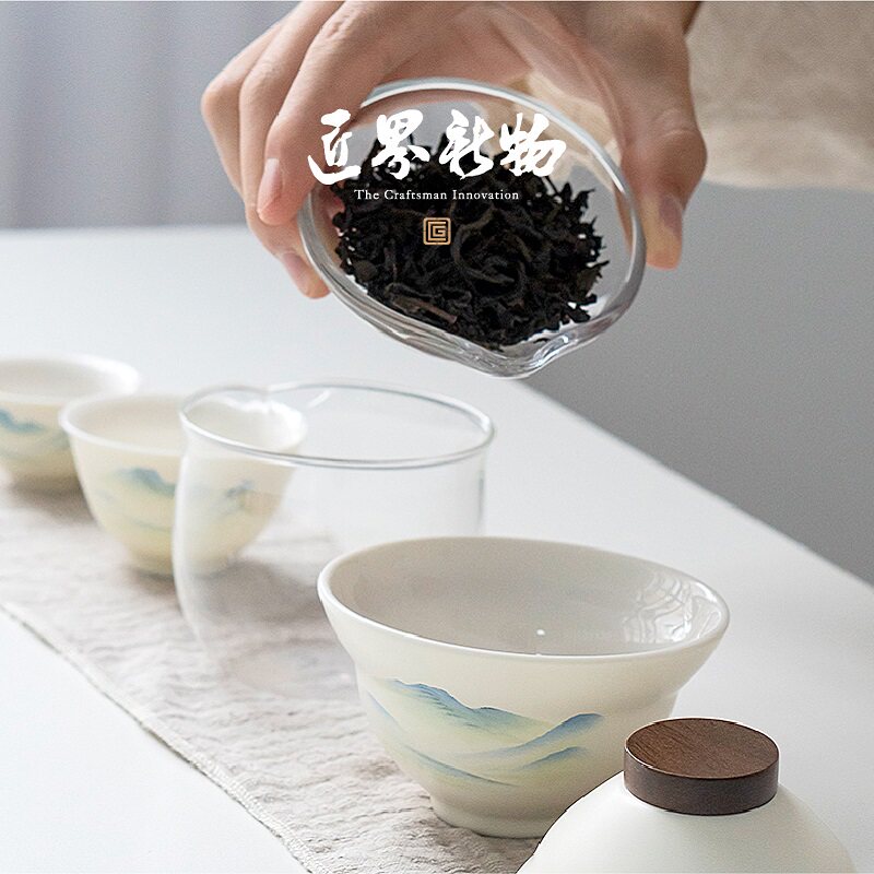 Jianfu (Jiqing), 1 pot, 2 cups, Qianli Jiangshan (Yabai), 1 pot, 2 cups, tea can, Jianfu (maroon), 1 pot, 2 cups, Qianli Jiangshan (Yabai), 1 pot, 2 cups, Qianli Jiangshan (Yabai), 1 pot, 2 cups, Jianfu