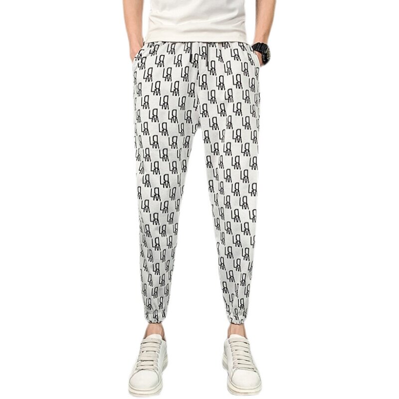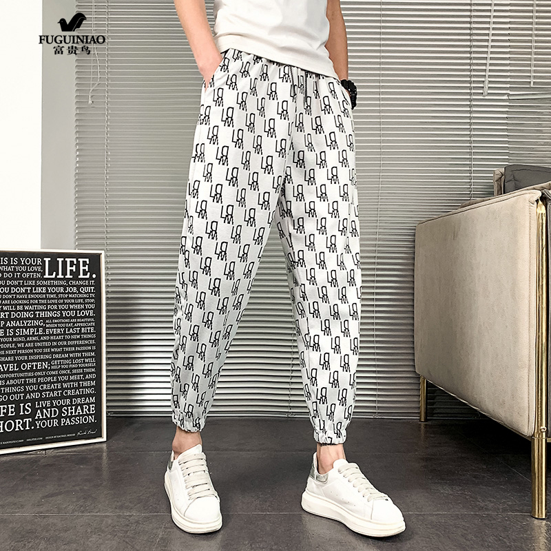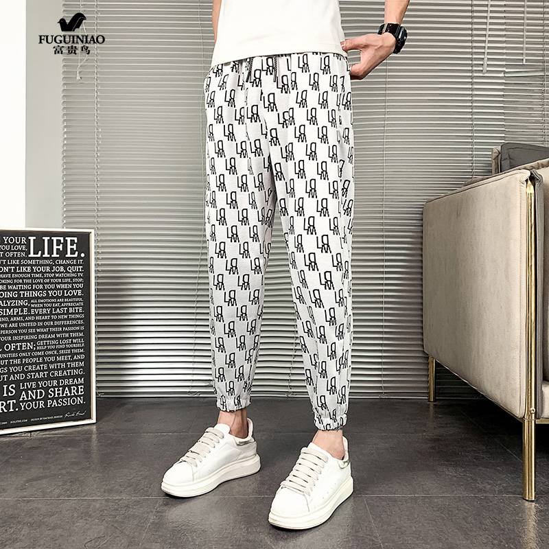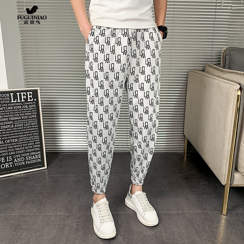 Rich Bird Harynn Pants Men's Summer Ice Silk Senior Feel Thin of ironing youth tightness waist flowers Close-up Bunch Pants Men