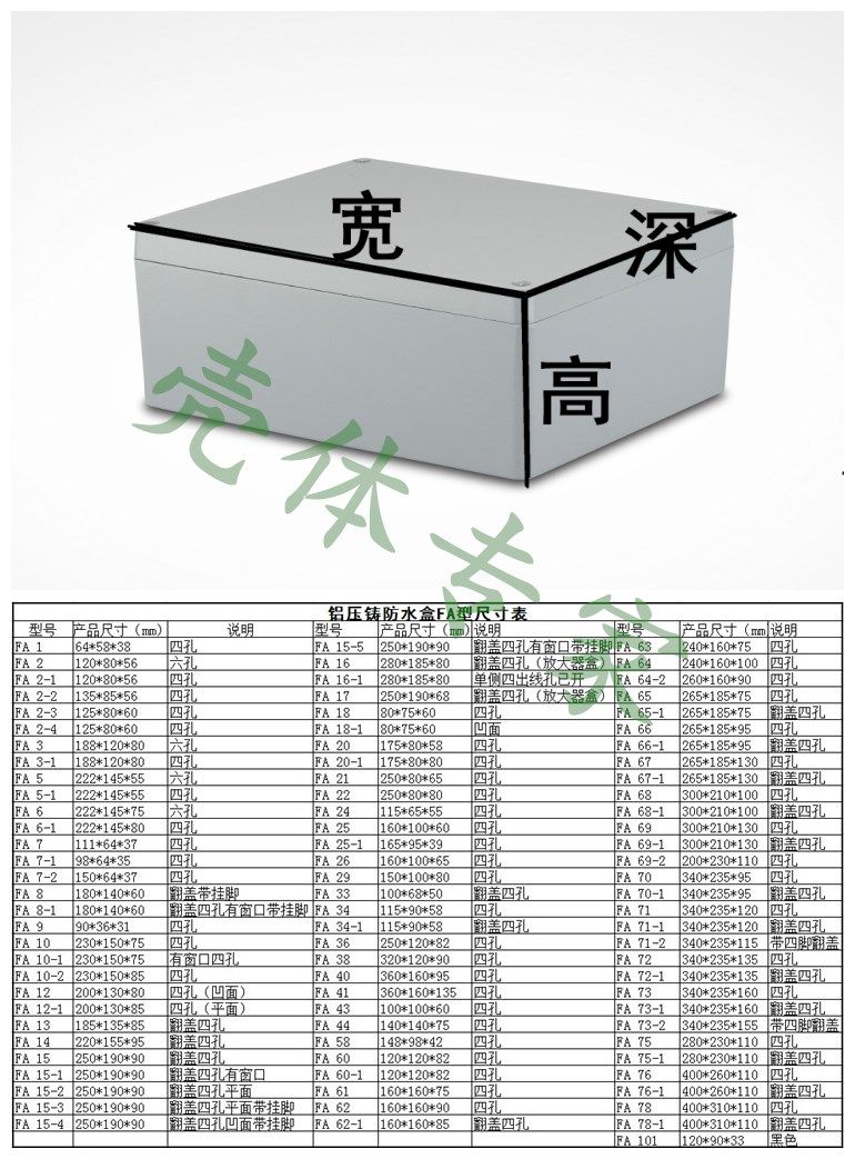 Cast aluminium waterproof case outdoor junction box overwire box terminal box aluminium alloy FA-75 110 * 230 * 280mm