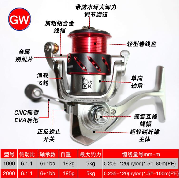 Guangwei reel Xianglin micro-object 1000 raft rod wheel Luyaji fishing carbon shallow line cup sea fishing fishing wheel Luya wheel