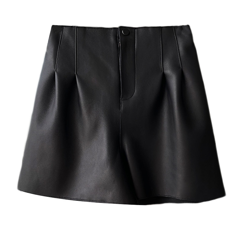Aying leather grass big long leg special soft little lamb leather 2021 new sensible slim casual genuine leather 50% pants female loose shorts