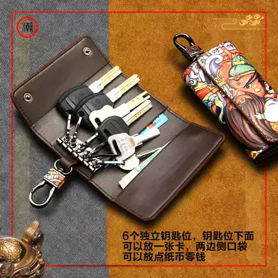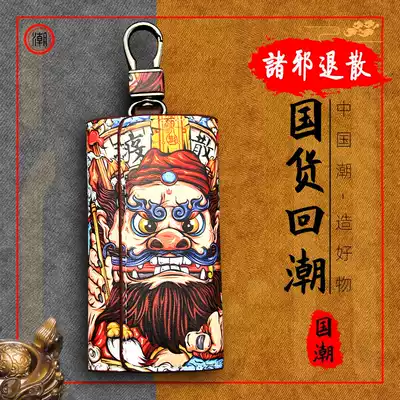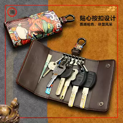 pilaoduo Chinese style key bag embossed cartoon men's car buckle large capacity national tide keychain personality