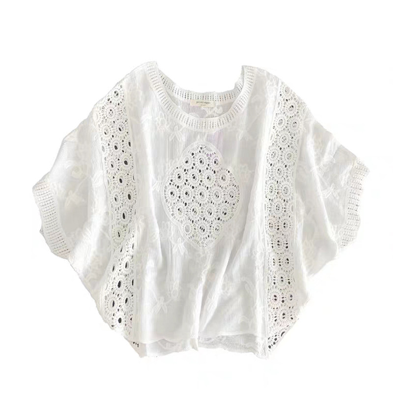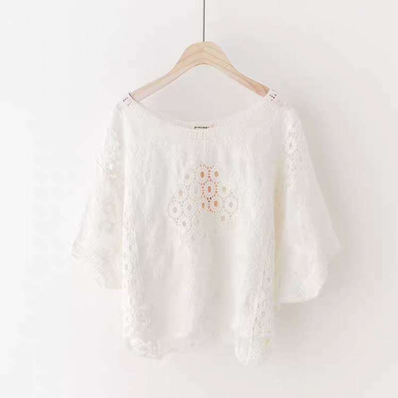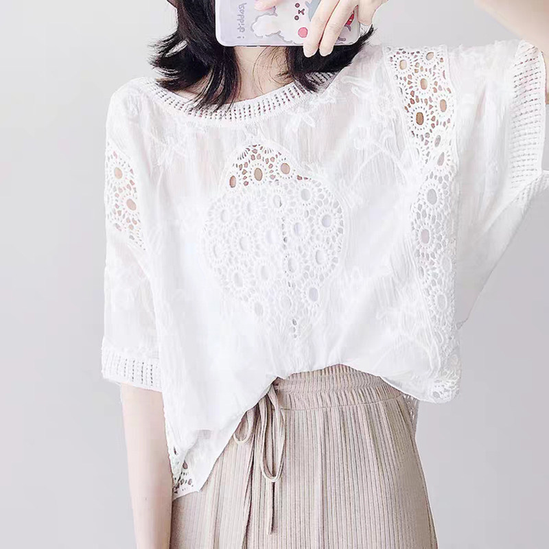 European station lace shirt women summer thin 2023 new fashion temperament white sleeve hollowed tide