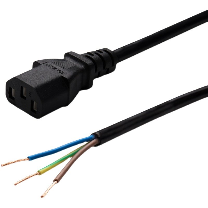 National standard pure copper power cord C13 three-core single product suffix plug line 3-core female head with wire bare head power cable