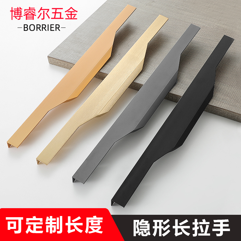 Customized black lengthened ultra-long stealth wardrobe door pulls hands on one door to top drawer cabinet thumb handle