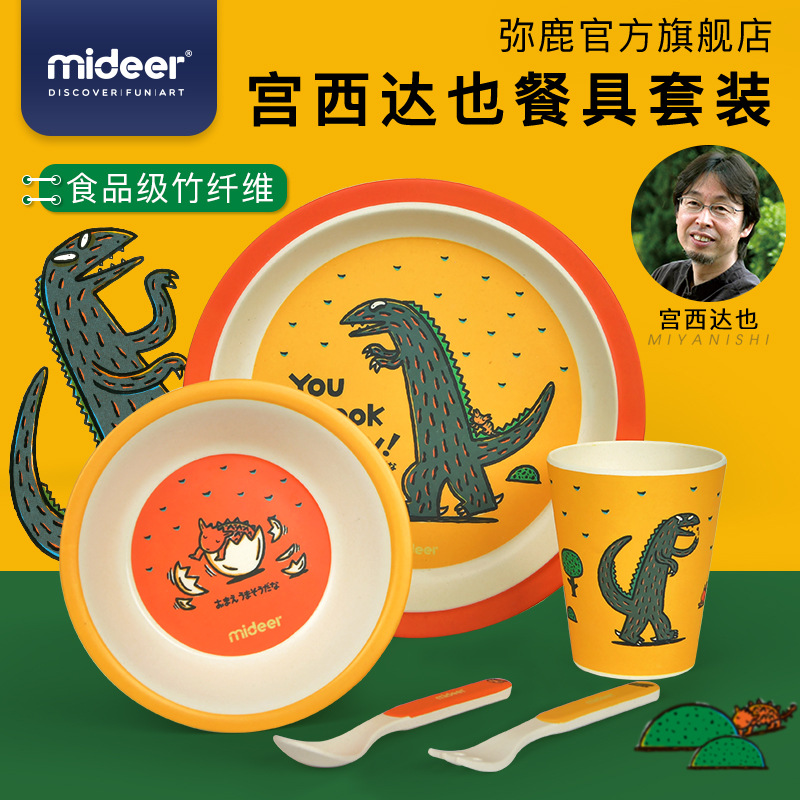 Mideer Milu Palace Xida also Tyrannosaurus Rex tableware children's fork spoon dishes dinosaur baby bamboo fiber dinner plate