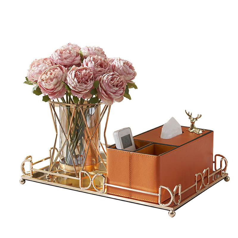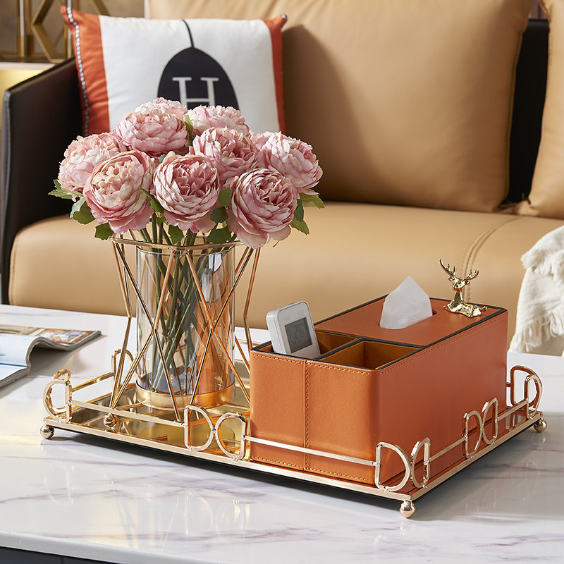 Home Multifunction Removable Toilet Paper Towels Box Au Style Light Lavish Living Room Tea Table Remote Control Containing Box Decoration Vase Suit