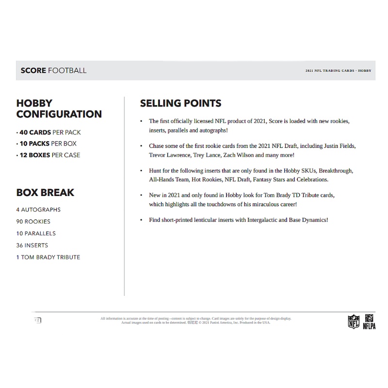 (34ING) 2021 NFL Panini Score Hobby Panini Rugby star card box card