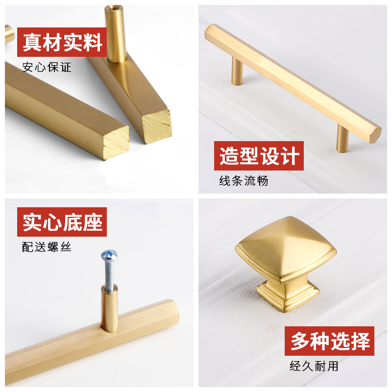 Modern minimalist wardrobe overall cabinet drawer pure copper brass handle golden light luxury cabinet door cabinet all copper single hole handle