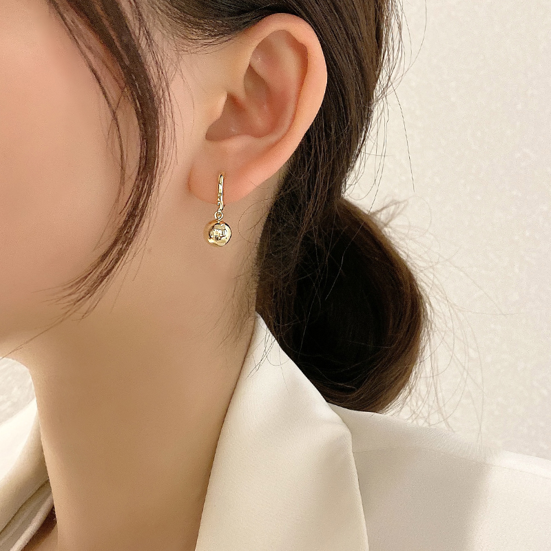 Hoop earrings female golden ball earrings 2021 new trendy light luxury metal ear buckles Korean temperament simple earrings
