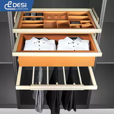 Wardrobe trouser rack telescopic household pull-out multifunctional pants drawing rack slide rail hanging trouser rack push-pull damping West trouser rack
