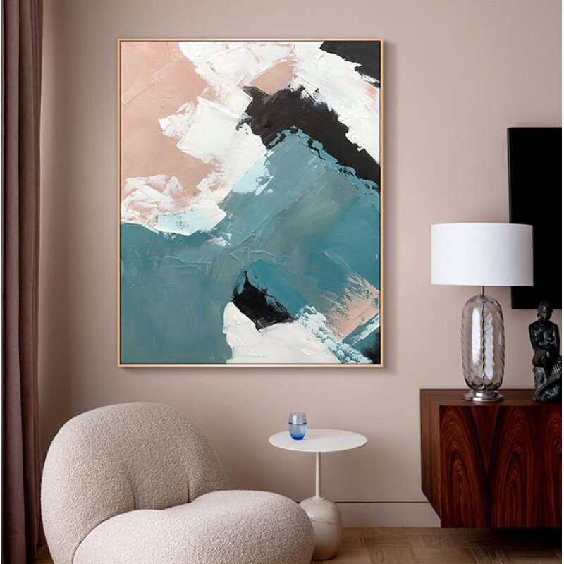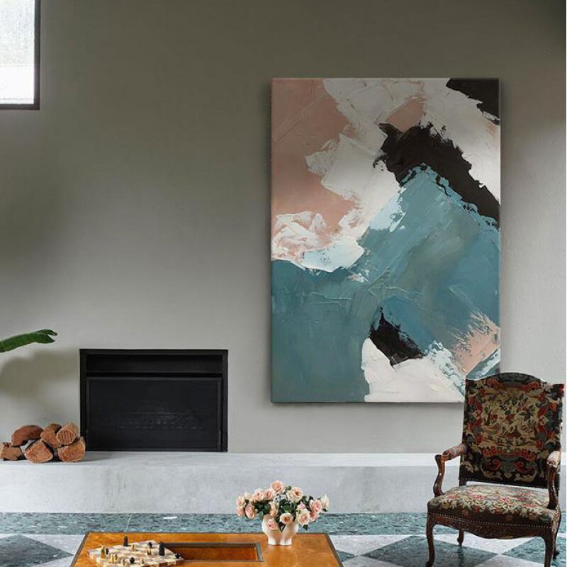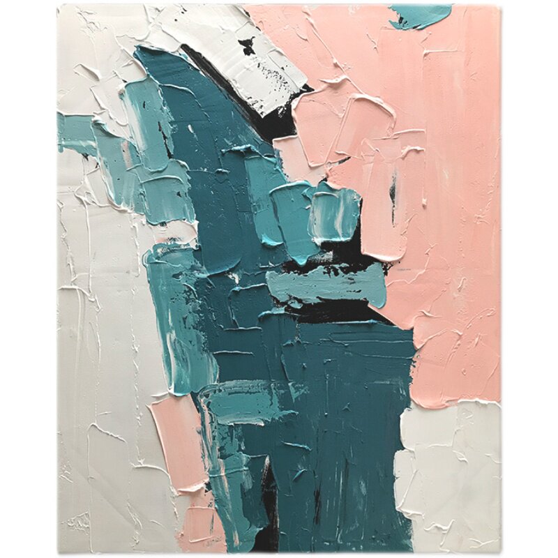 Pure hand-painted abstract color block oil painting Nordic light luxury minimalist style modern living room background wall Morandi decorative painting