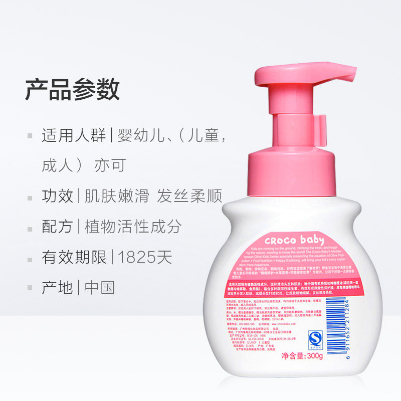 Crocodile baby olive cherry children's bubble shampoo and shower gel two-in-one foam type 300g