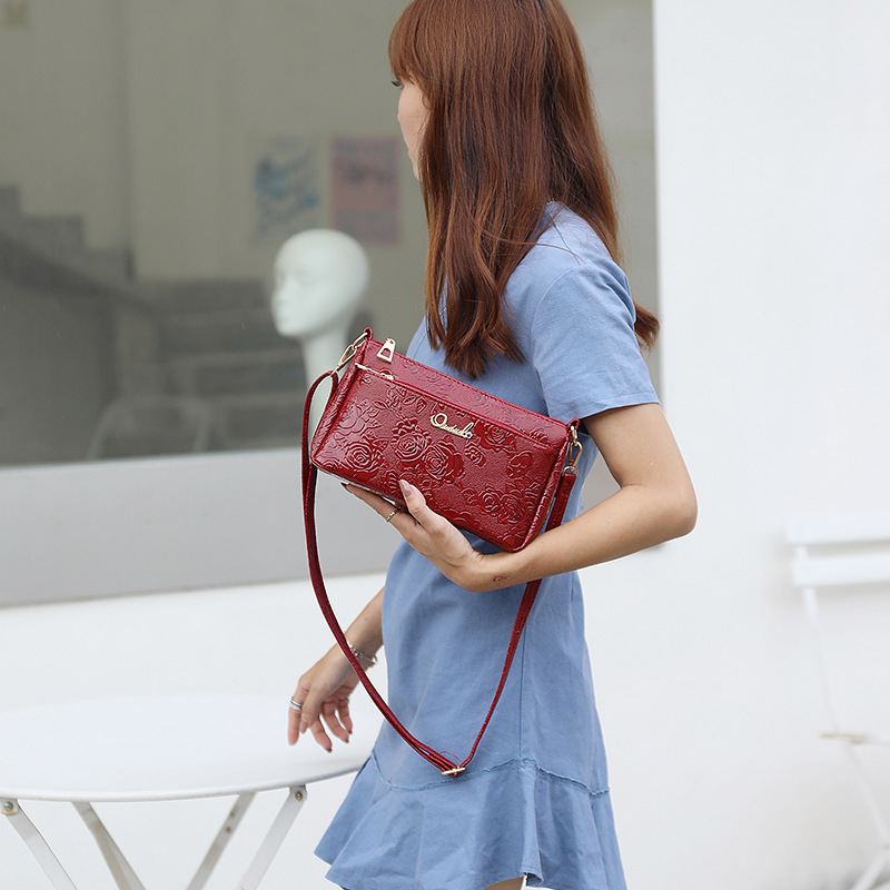 Women's bag 2022 Summer Korean version lacquered leather New single shoulder inclined satchel bag for the mother to buy the vegetable packet bag