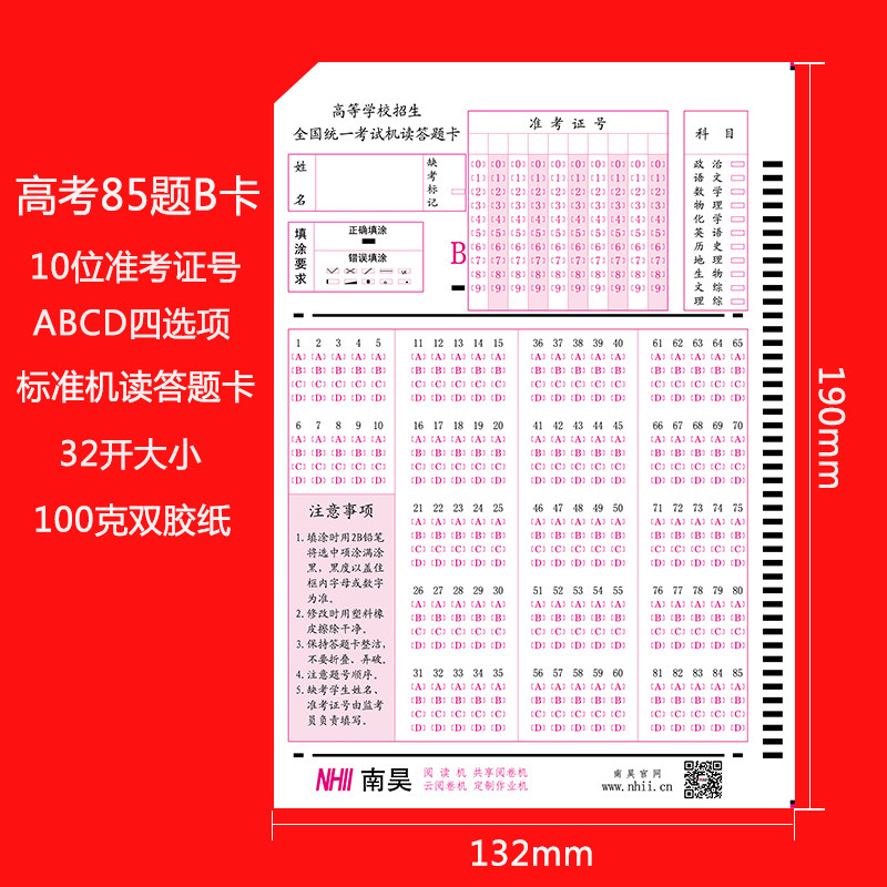 College Entrance Examination Answers Card School Admissions National Examination Practice Machine read paper Cardboard Reading and Roll Machine 85AB Card High School for professional schools