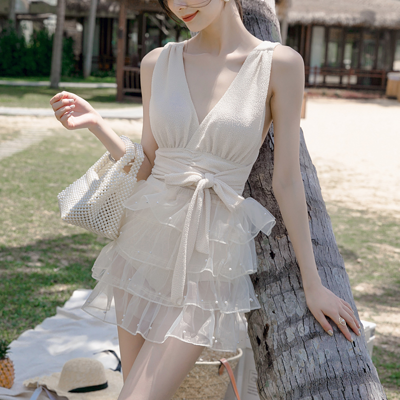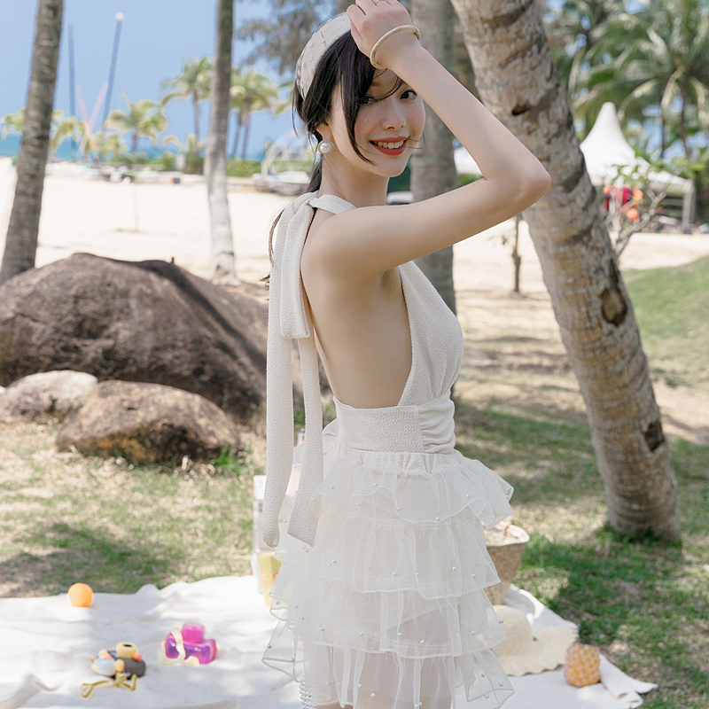 Parent-child swimsuit women's new summer conservative Korean version of the hot spring one-piece dress type small chest gathered to show thin belly cover mother and daughter swimsuit