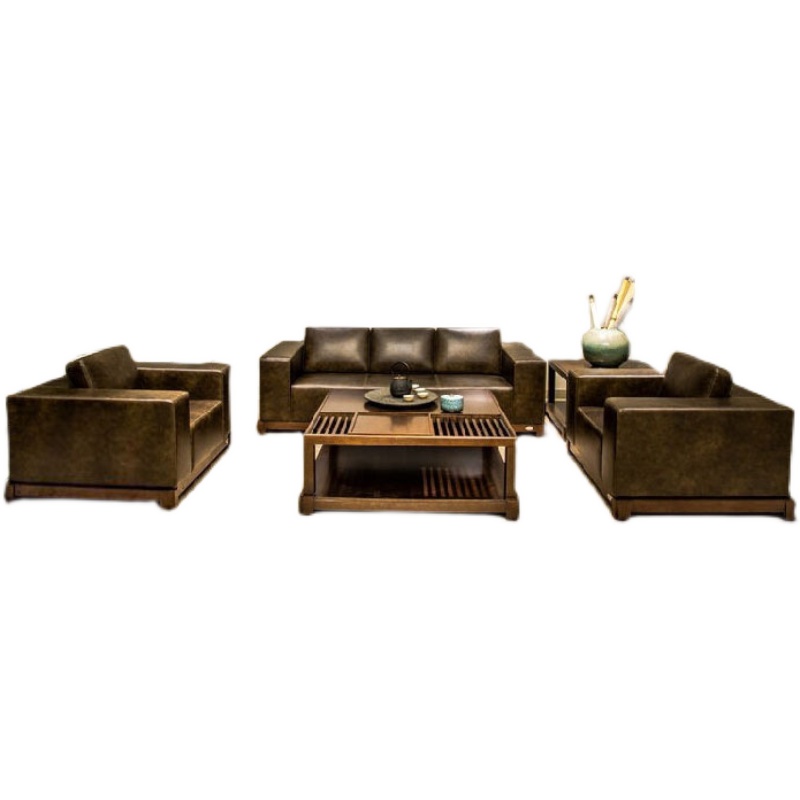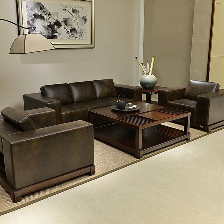 New Chinese style solid wood sofa chair combination simple modern office leather president manager boss sofa furniture