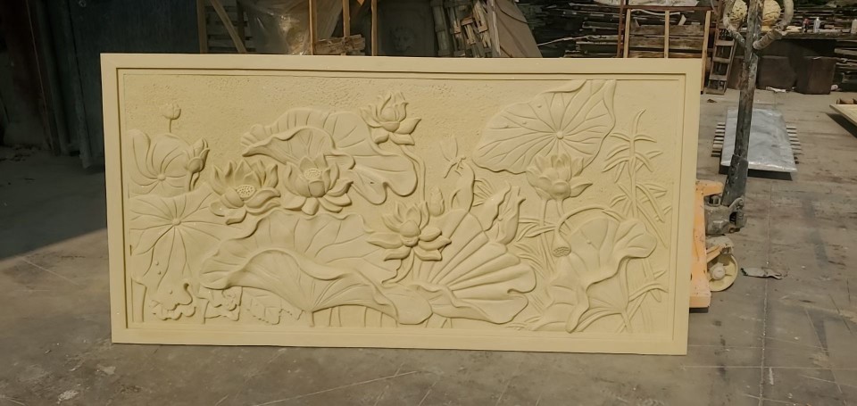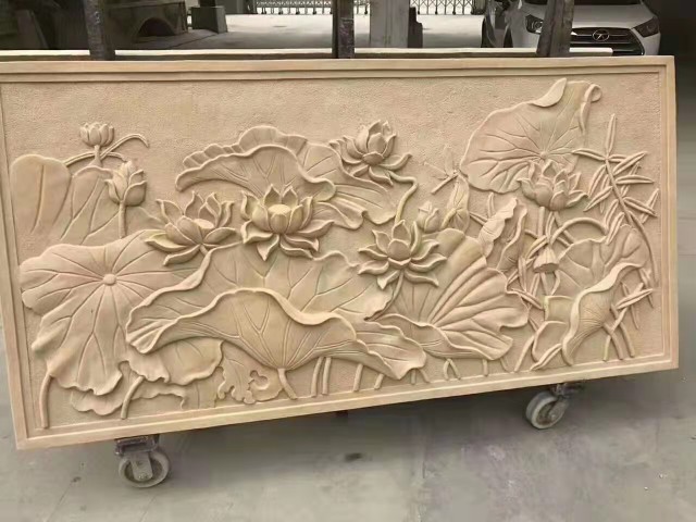 Sandstone relief custom lotus figure mural hotel lobby decoration outdoor garden landscape background wall factory direct sales