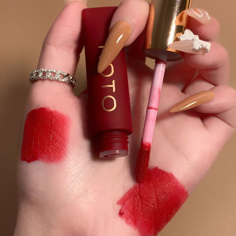 ROTO velvet matte lip mud waterproof non-stick cup female student models niche affordable matte lipstick tomato color white