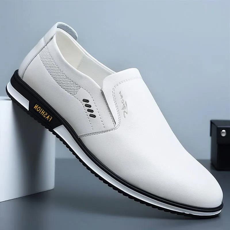 Leather shoes men's spring 2022 new trend men's shoes casual all-match breathable Korean soft leather soft-soled white shoes