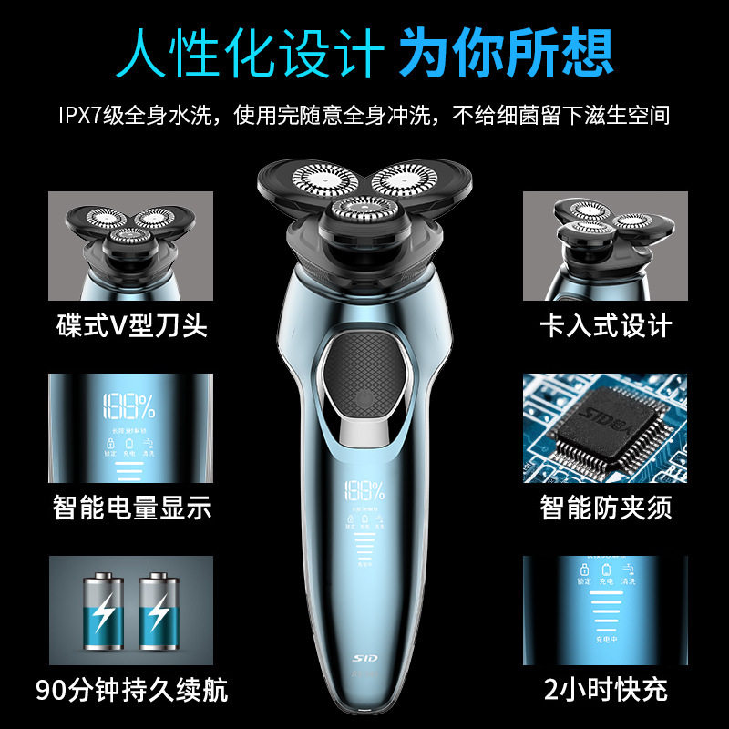 Superman flagship electric razor three-head machine multi-effect grooming body washing razor smart fast charge RS386