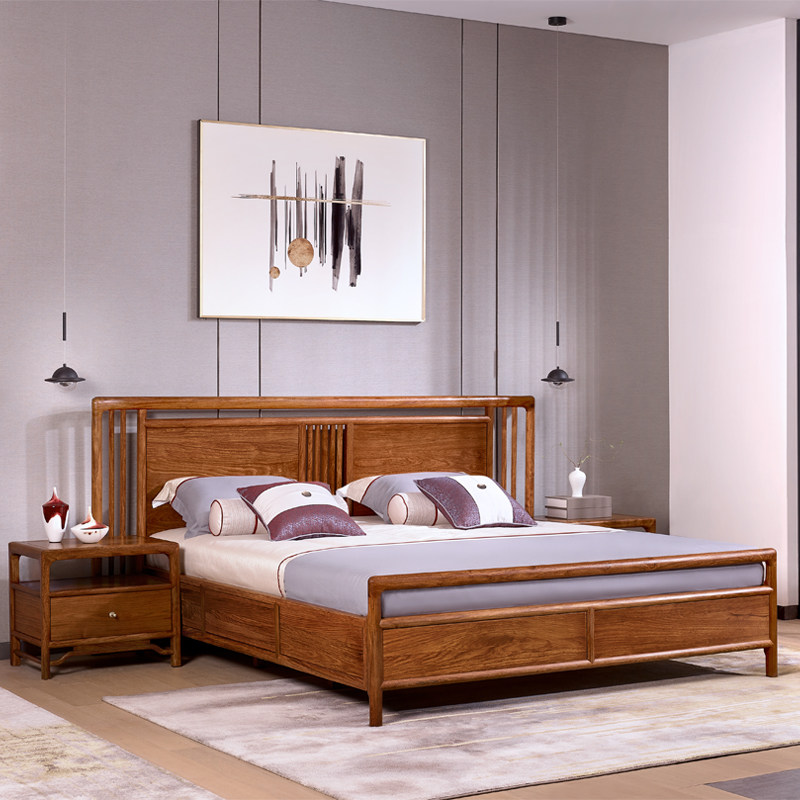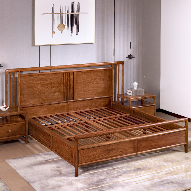 Berson furniture passing on hedgehog purple sandalwood New Chinese style meditation ancient wind bedroom furniture 1 8 m solid wood double people's bed-Taobao