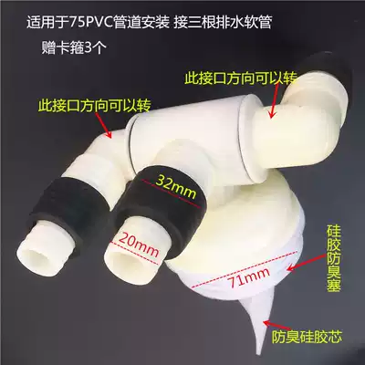 Washing machine drain pipe joint Universal washing machine floor drain drain pipe Air conditioning adapter Balcony sewer three-way