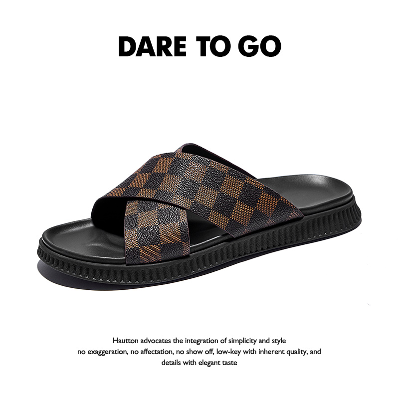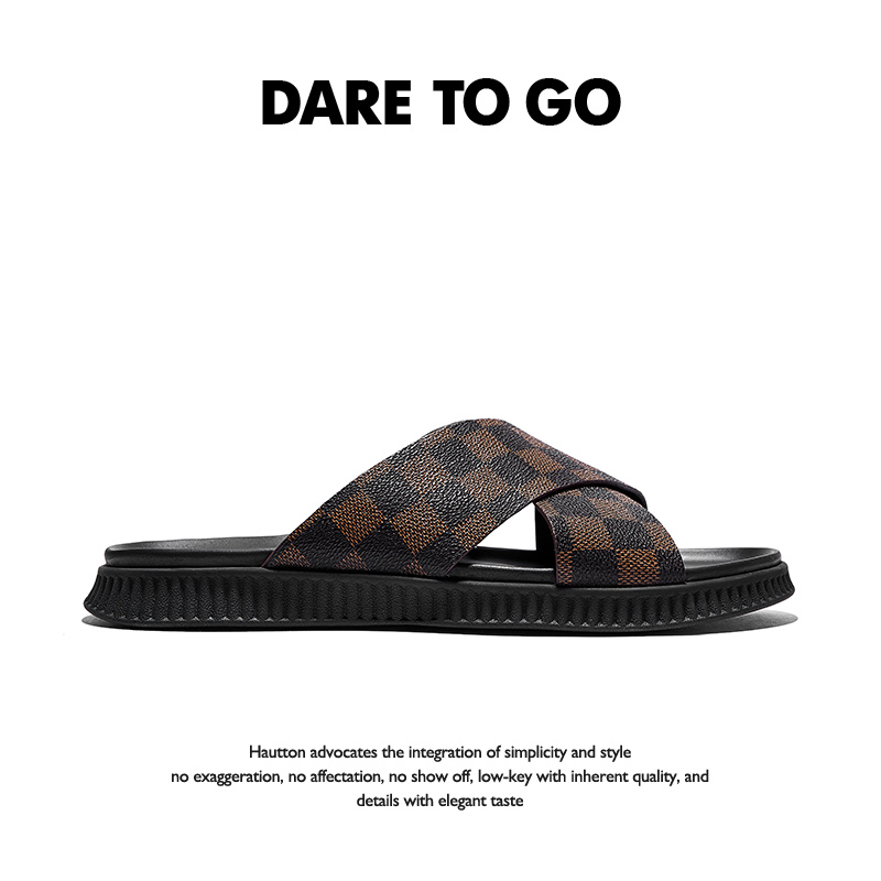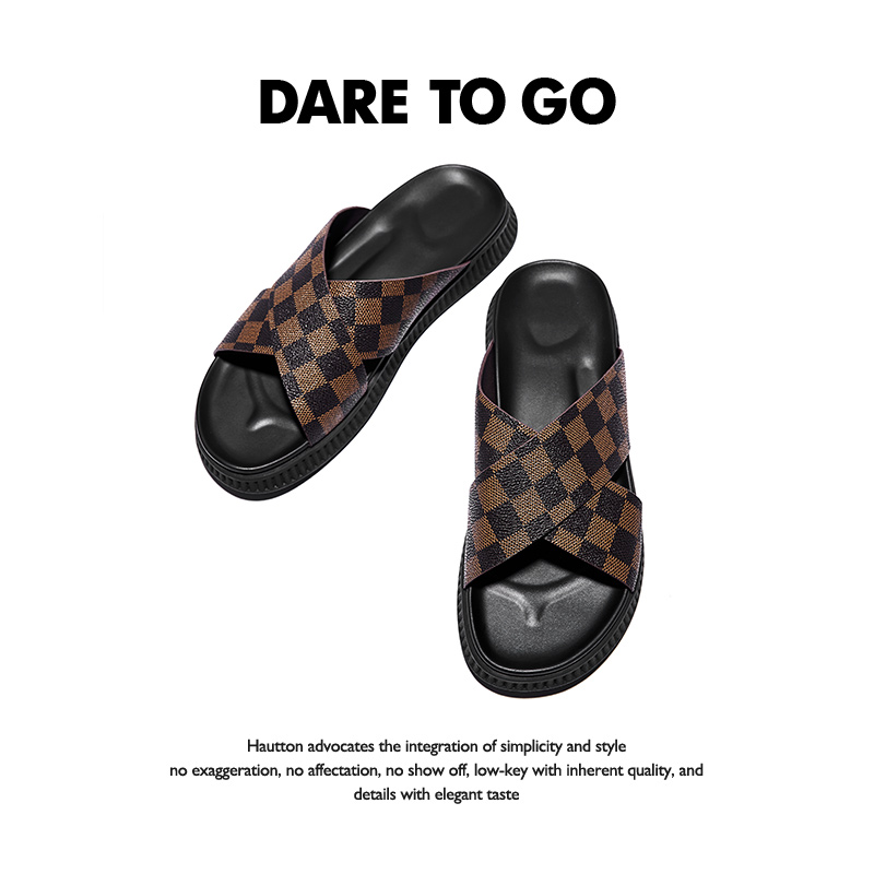 HT Haodun stepping on shit sandals and slippers summer new one-word drag men's trend outdoor wear casual wild sandals men's drag