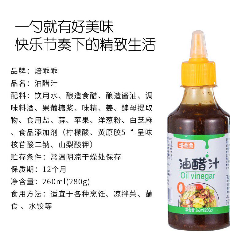 Roasted Oil Vinegar Juice 260ml 0 Fat Fitness Fruit Vegetable Salad Juice Black Vinegar Juice Low Card Degreasing Sauce