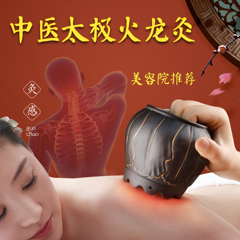 Stone Needle Fire Dragon Pot Moxibustion Scraping Cupping Pot Beauty Institute Anti-Burn Tai Chi Purple Sand Moxibustion Jar Apparatus Traditional Chinese Moxibustion Apparatus