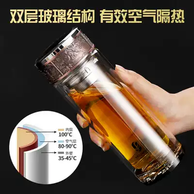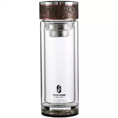 Mingxia double-layer glass high-end water cup business crystal cup heat insulation and anti-scalding printing word printing LOGO custom teacup