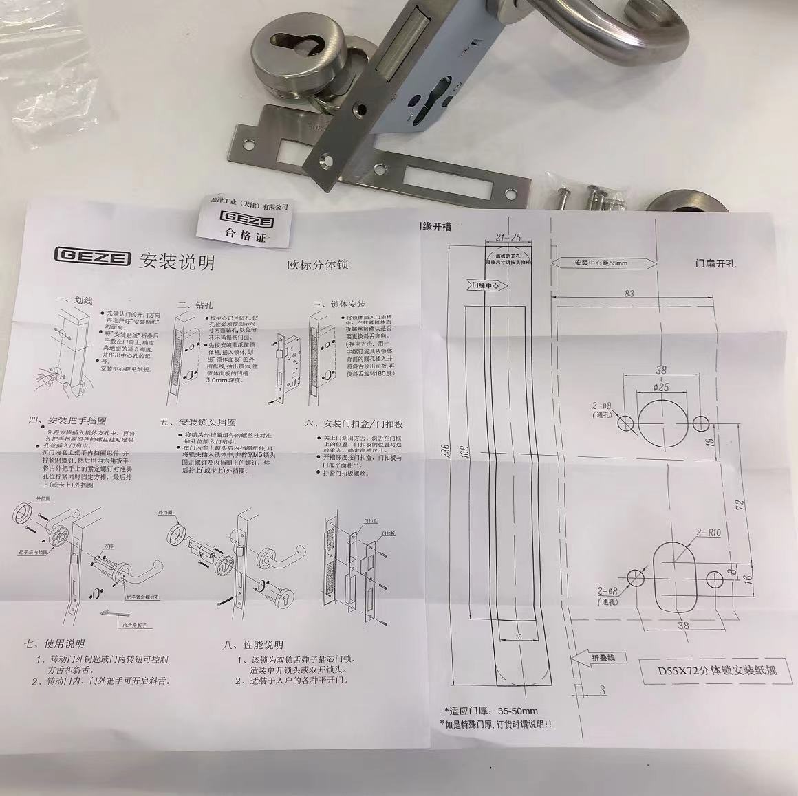 GEZE fire lock EL01SS door lock stainless steel fire door lock indoor bedroom universal two-piece lock