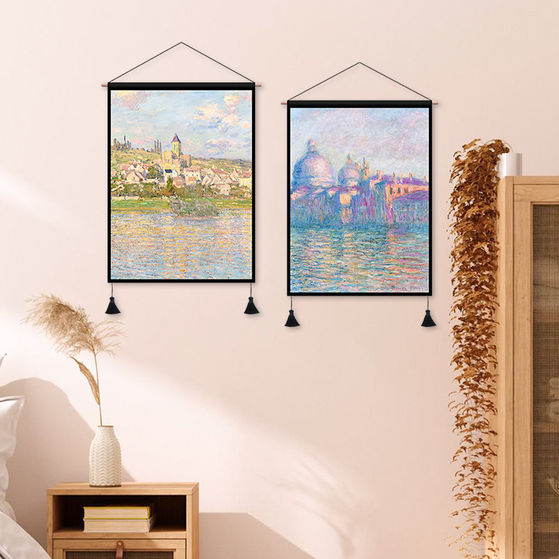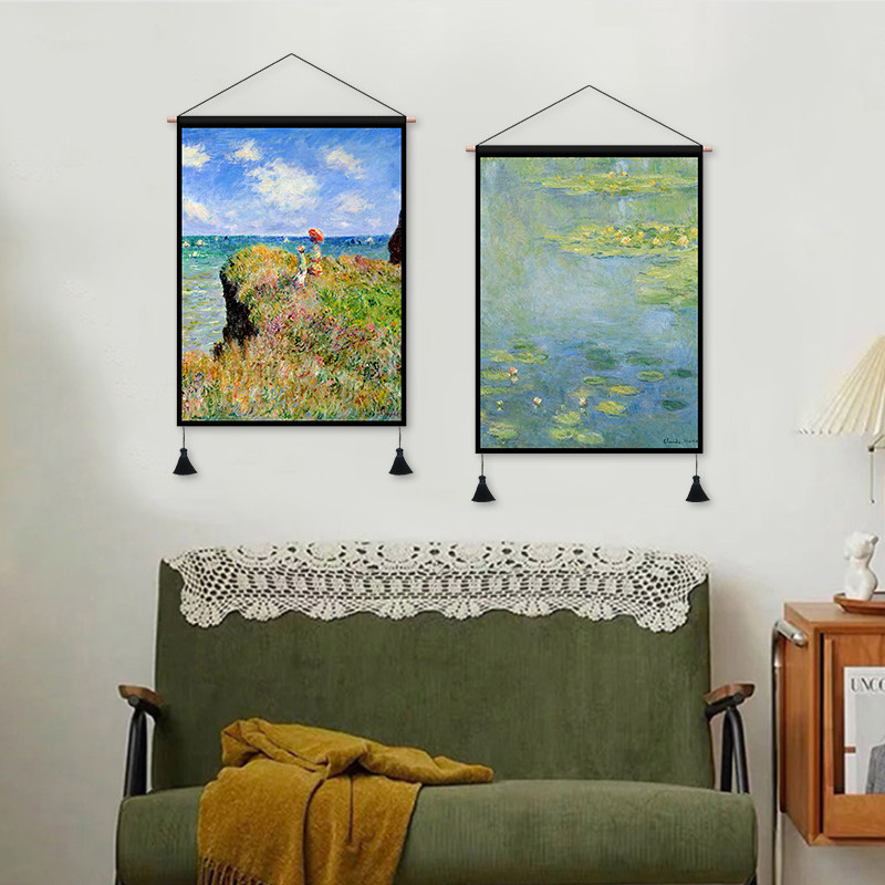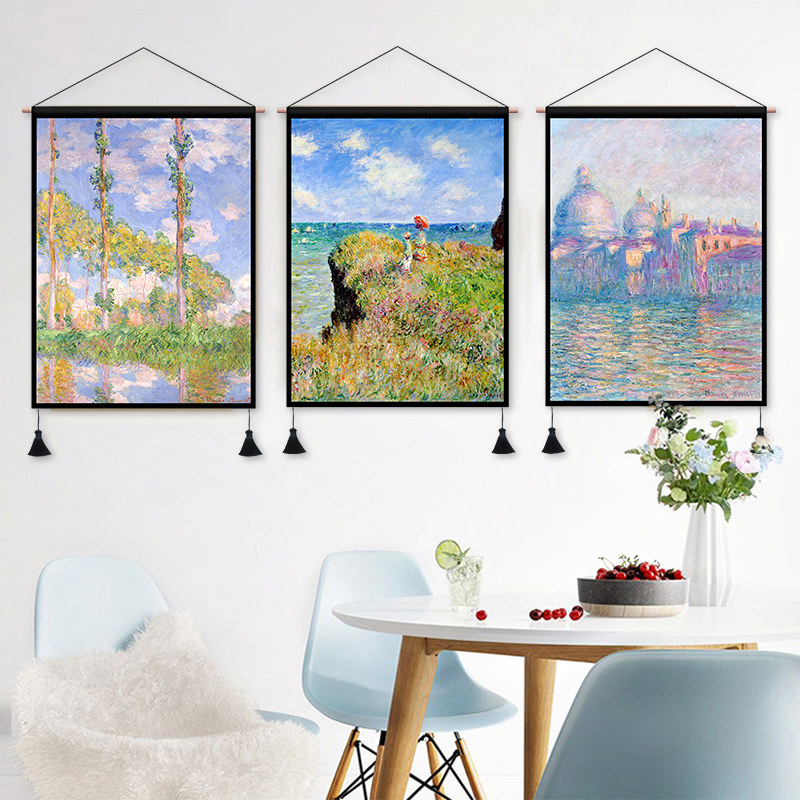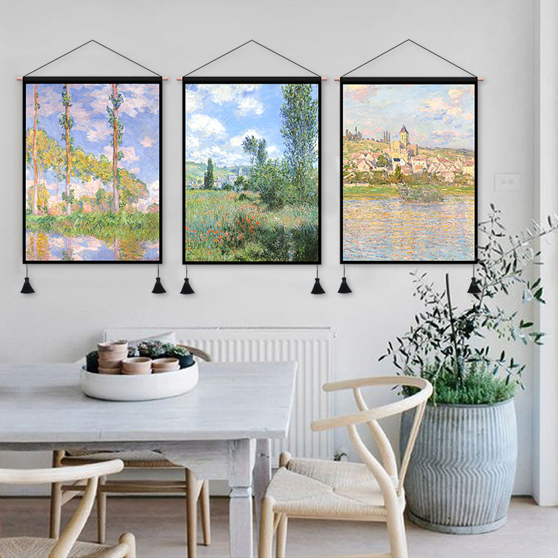 Monet oil painting fabric hanging painting living room dormitory background decorative painting rental room decoration hanging cloth bedroom bedside tapestry