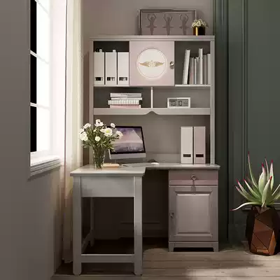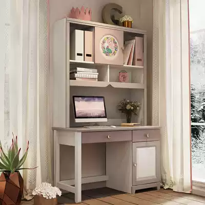 Solid wood desk bookshelf combination Home with bookcase integrated student desk Children's learning computer desk Desktop table